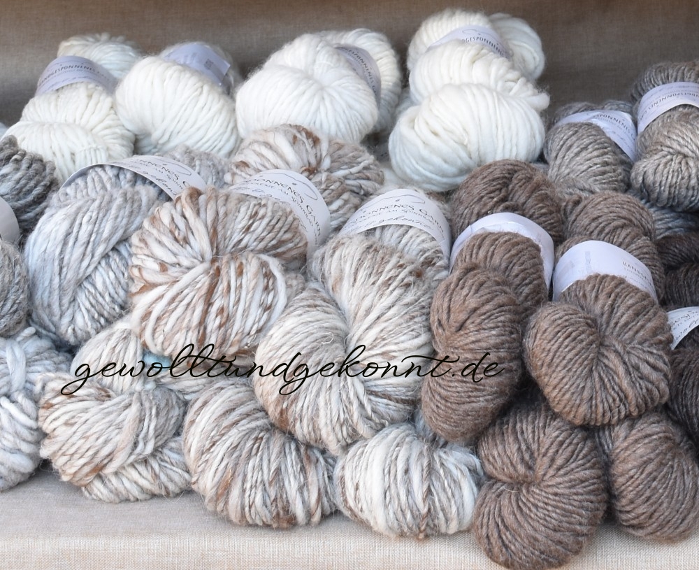 Familientradition im Wollhandwerk und künstlerischen Gestalten fort. Ich entwerfe, schaffe und verkaufe handgesponnene Garne, Spinnfasern sowie textile Einzelstücke höchster Güte.